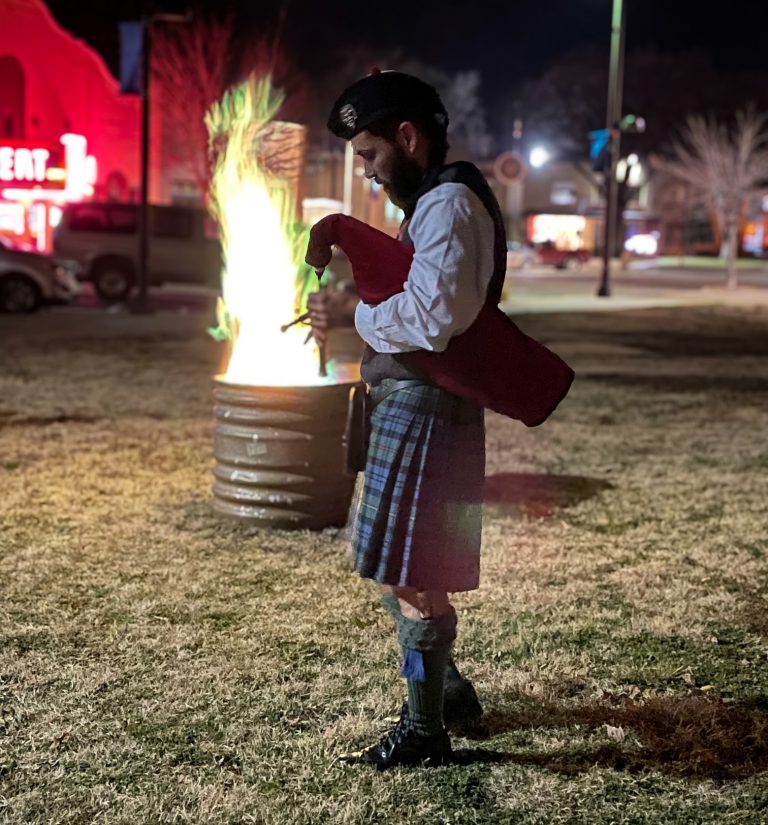 Members of the community converged on the Jacob Engle Dry Goods lawn last Thursday to mark the year’s shortest day with a joyful celebration. Guests were greeted with warm, spiced cider and homemade treats while they gathered around the blazing bonfire.
